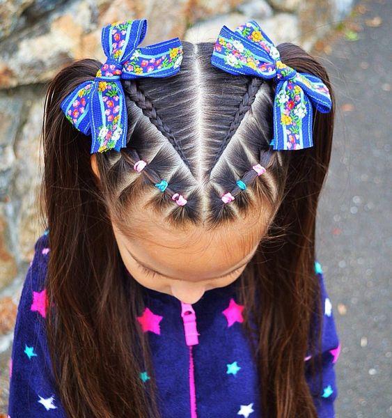 Colorful rubber bands hairstyles for kids.